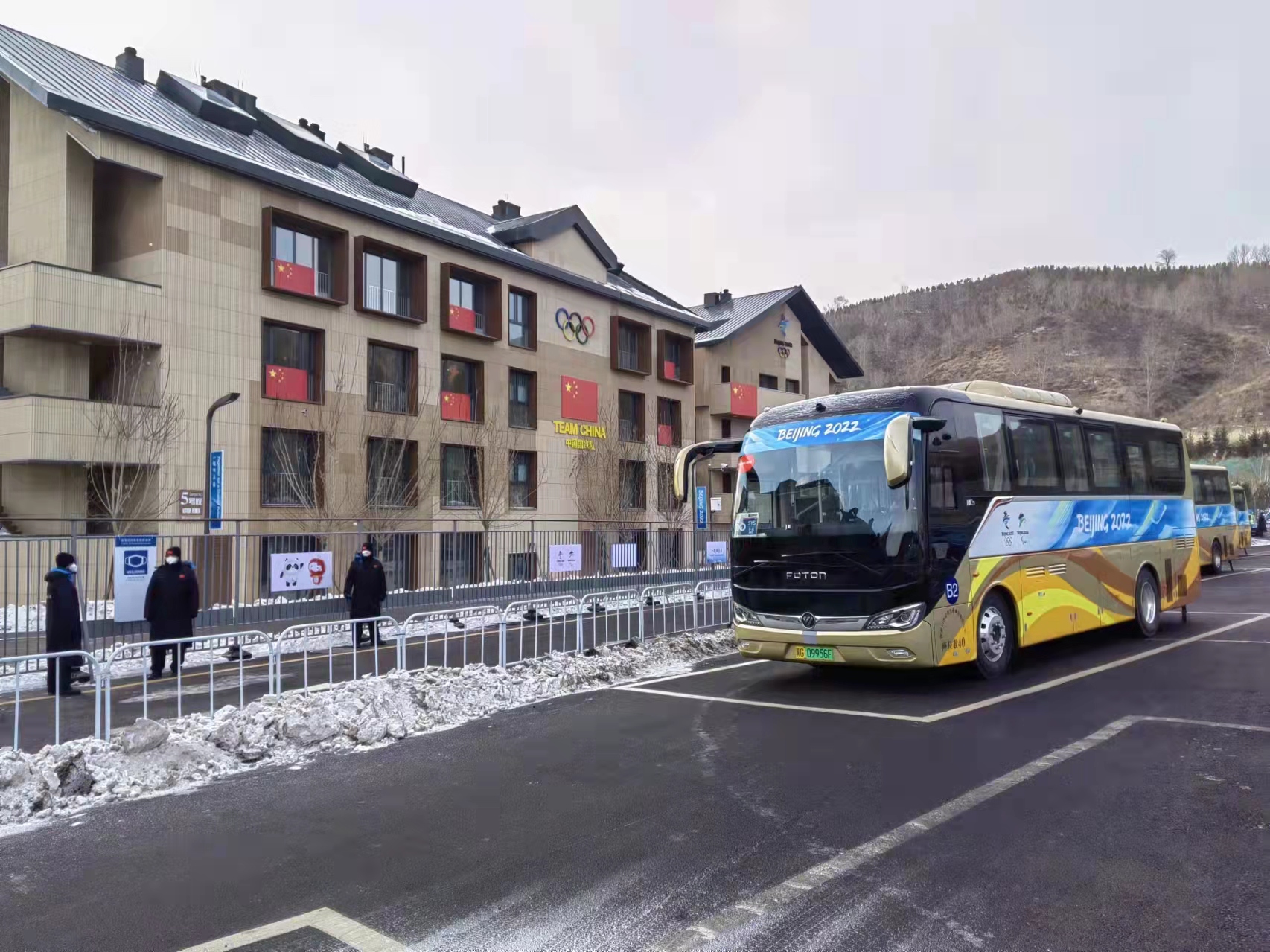 一辆辆奥运大巴在赛场外奔腾。